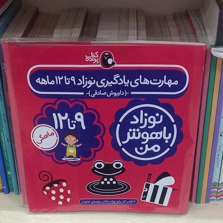 کتاب مهارتهای یادگیری نوزاد 9 تا 12 ماهه شامل 3 کتاب کار برای نوزاد و کتاب راهنمای خانواده است. 1 احساس و ادراک 2 ریاضی دان کوچولو 3 جهت ها و حرکت ها 4 توانایی و استعدادهای نوزاد 9 تا 12 ماهه کتاب راهنمای خانواده